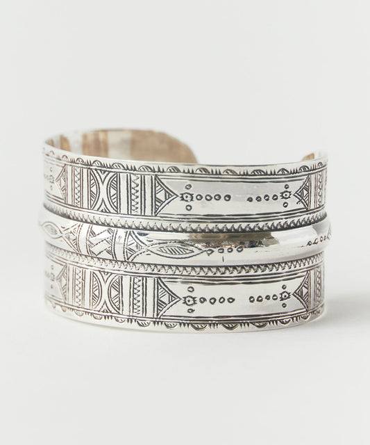 アフリカはサハラ砂漠で暮らすベルベル人系遊牧民のトゥアレグ族。彼らの作る銀製品は代々受け継がれる伝統工芸の一つでアフリカにおいて初めて銀細工を始めた民族との説もあり、ヨーロッパではインディアンジュエリーと双璧をなすネイティブジュエリーとしても認知されています。エルメスがコレクションでトゥアレグジュエリーを発表した影響も強く、世界中のファッショニスタから支持されています。一刀一刀手彫りで丁寧に彫られる模様は、魔よけなどの意味が込められており、古代の神話や民話の影響が色濃く残っている。シャープでありながら丸みがある独特のデザインで男女問わず楽しめるシルバーコレクションです。