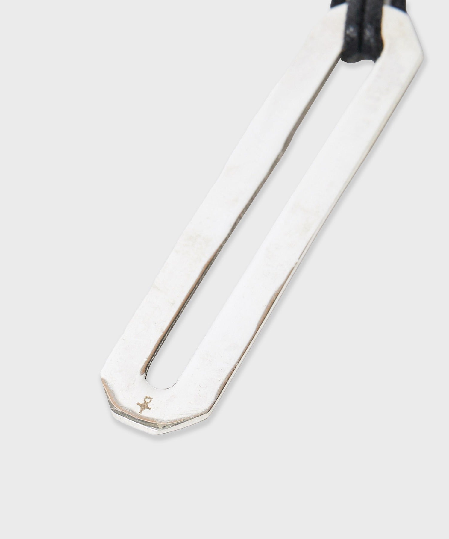 面の刀が手彫りで丁寧に彫られ、その文様にはそれぞれ意味があり、事物、物語、寓意などを象徴しています。細長い 八角形のシルエットが印象的なデザインで、全体に彫られた細かい文様が美しく存在感のあるネックレスになります。