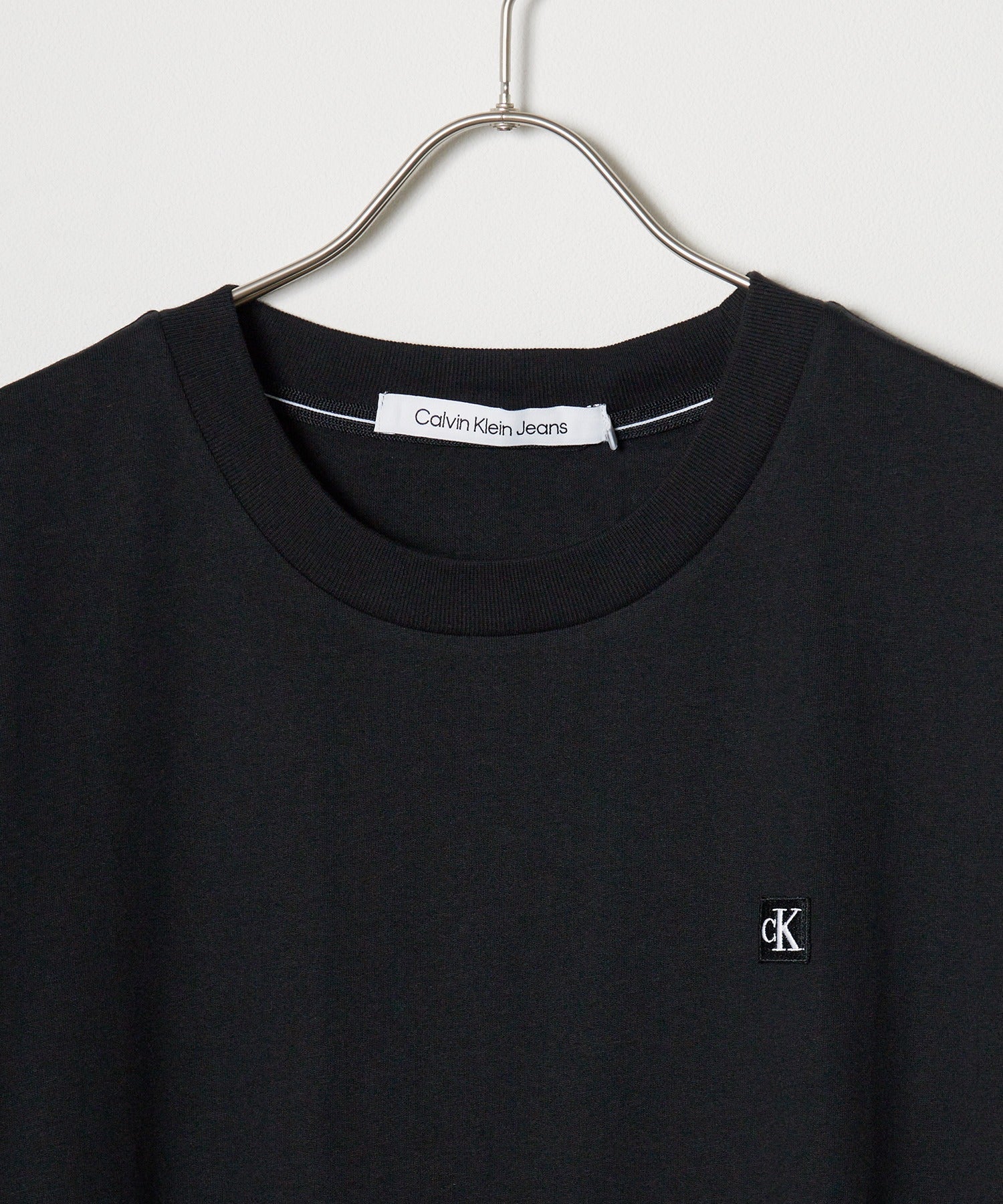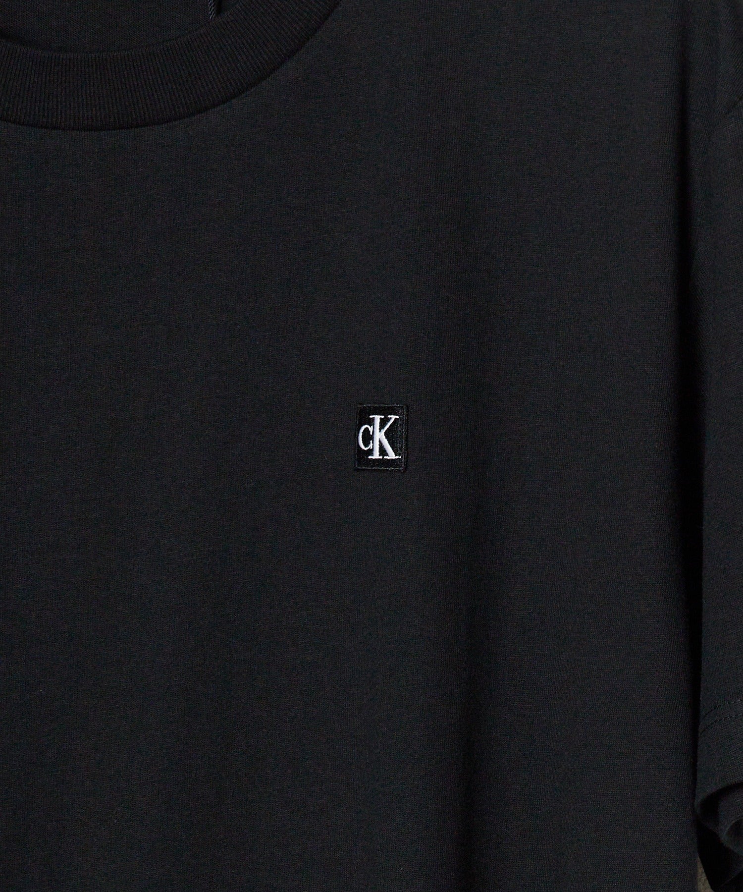 左胸にアイコンのCKバッジを施し、左袖口にもさりげなくモノグラムがプリントされシンプルなTシャツ。