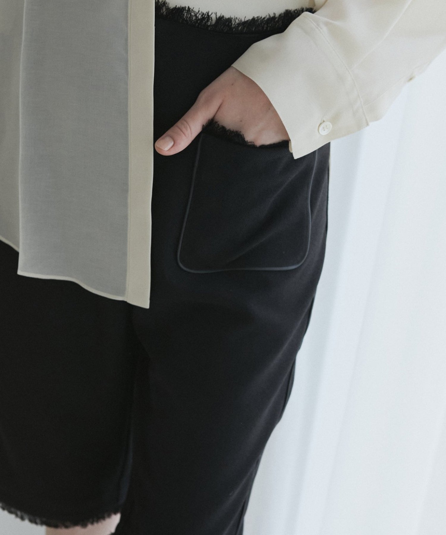フリンジを贅沢に使用した膝下丈のカプリパンツ。
