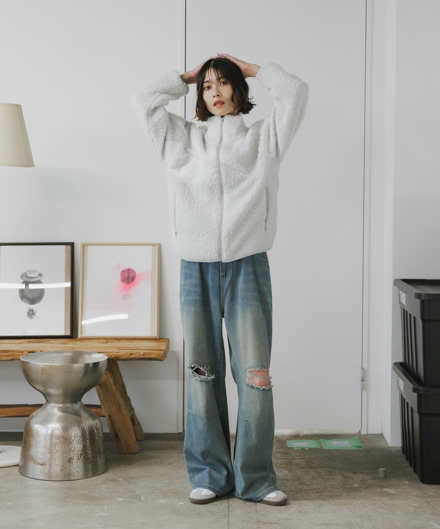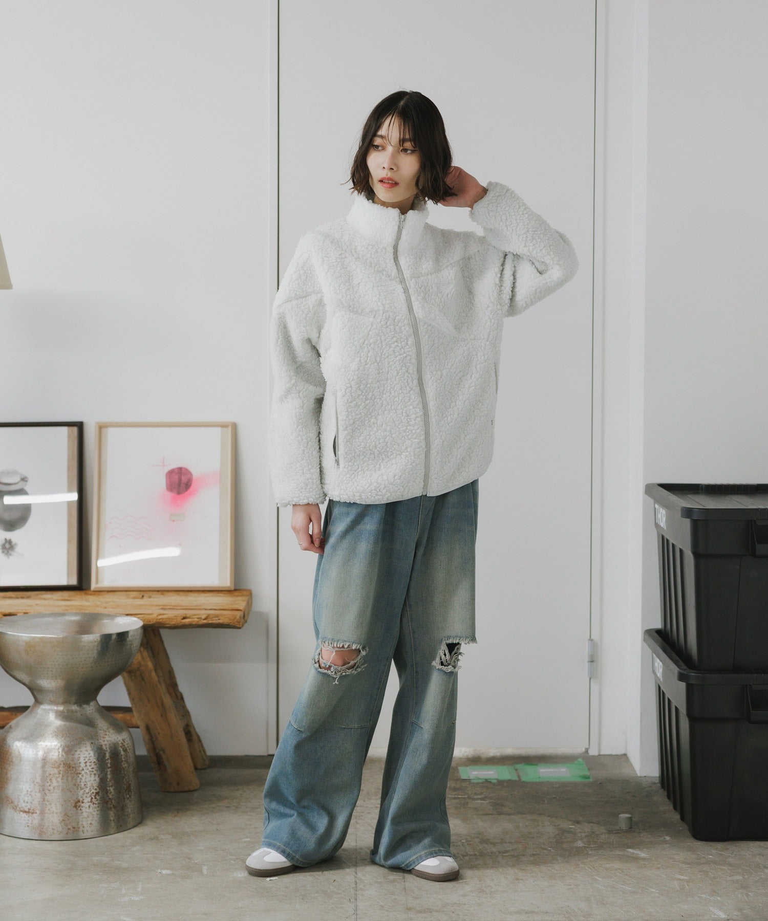 軽量なボアフリースで 柔らかなタッチとカジュアルな雰囲気の素材です。